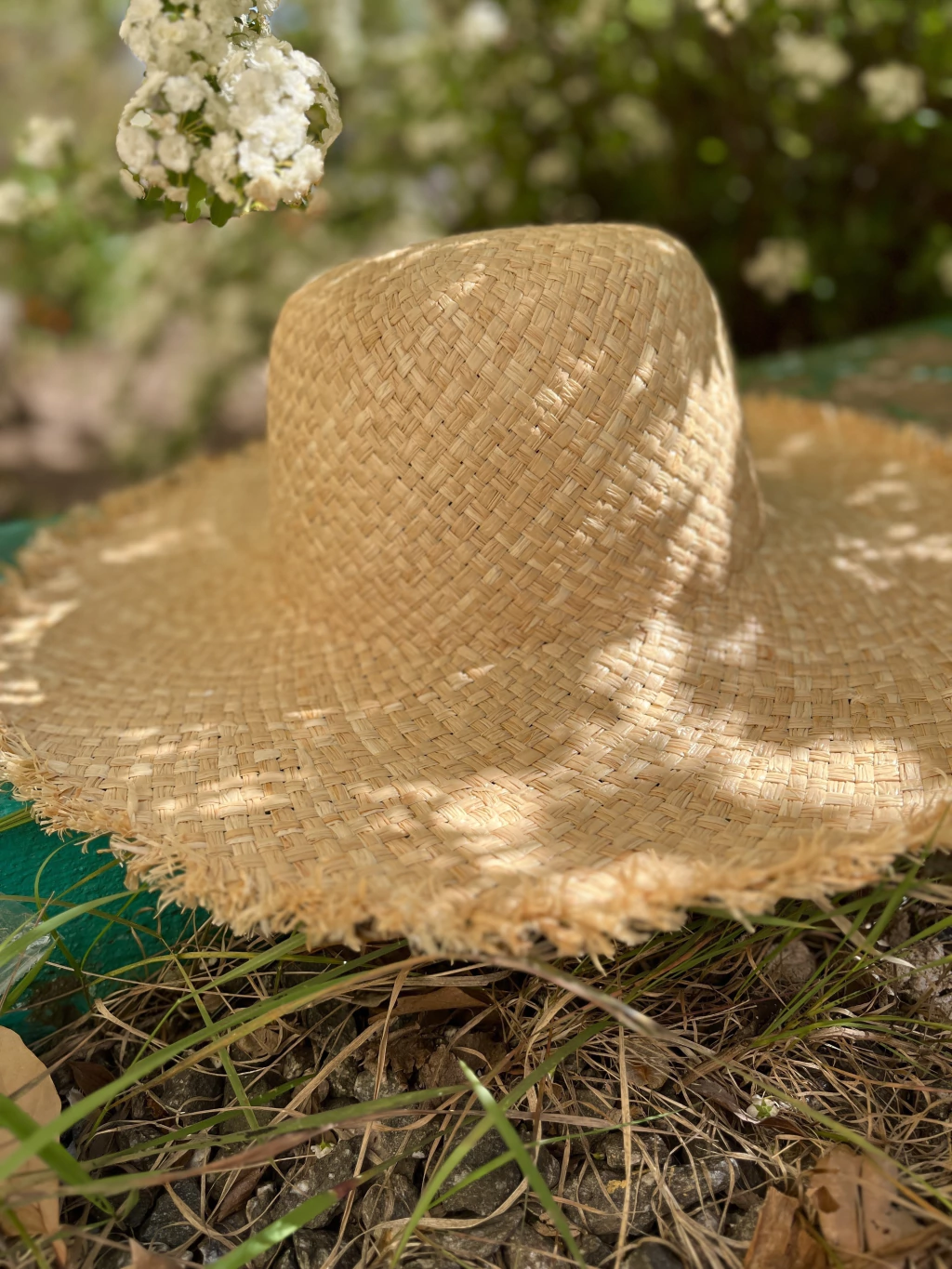 Este sombrero está confeccionado en rafia natural, lo que le aporta un estilo fresco y veraniego ideal para cualquier ocasión.