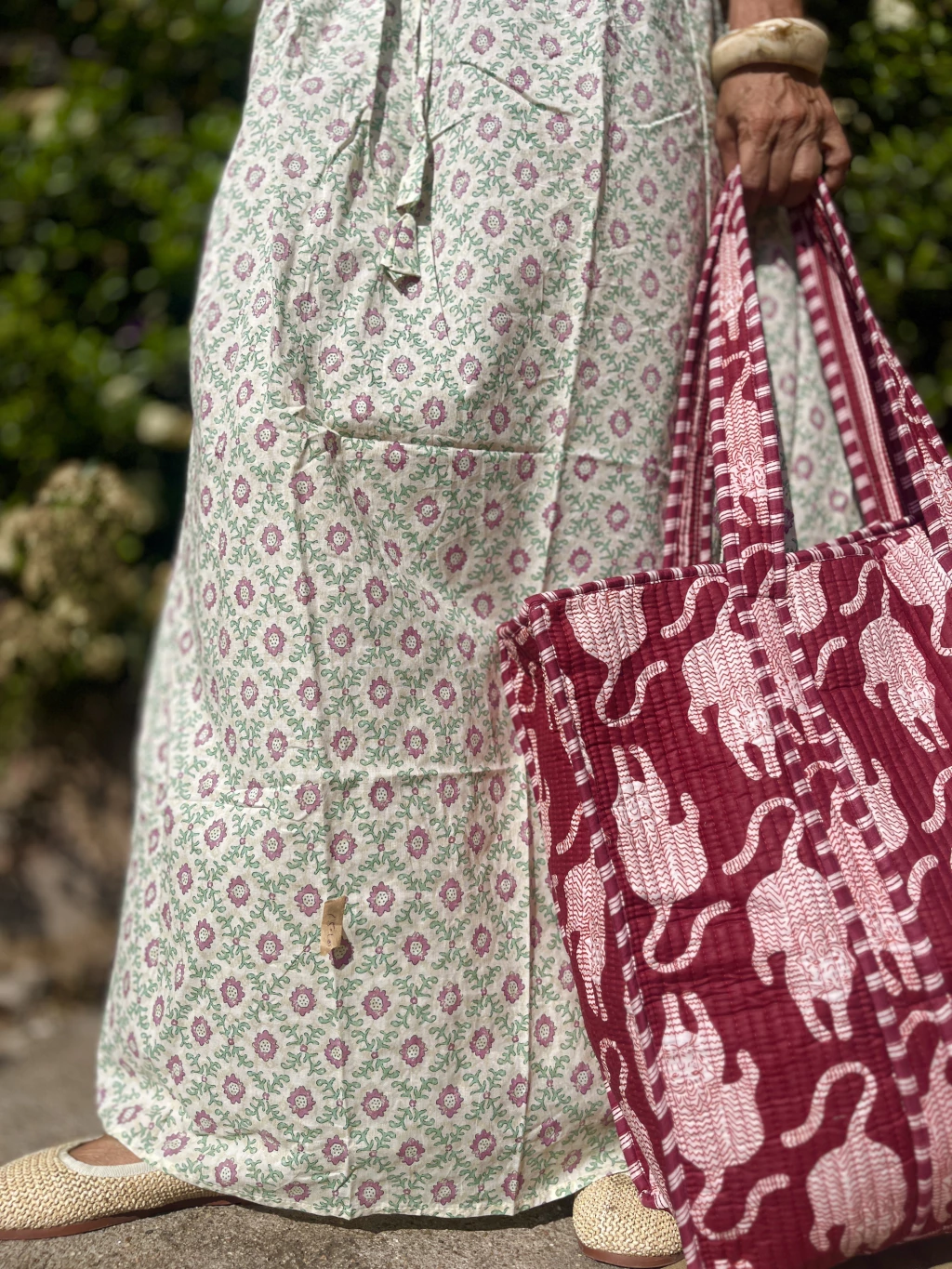 Descubrí el encanto del Vestido Saira, confeccionado en voile de algodón con la técnica block print.
